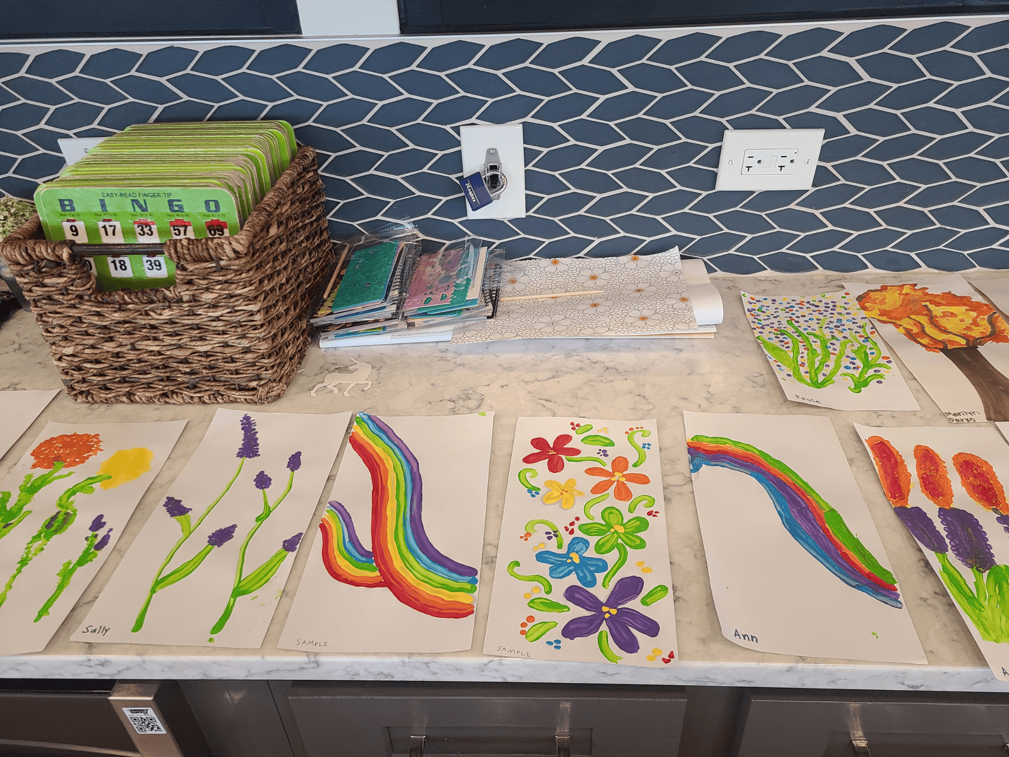 Blooming friendships with residence at CountryHouse Elkhorn Senior Living and painting beautiful flowers with q-tips. Very creative way to keep motor skills active.